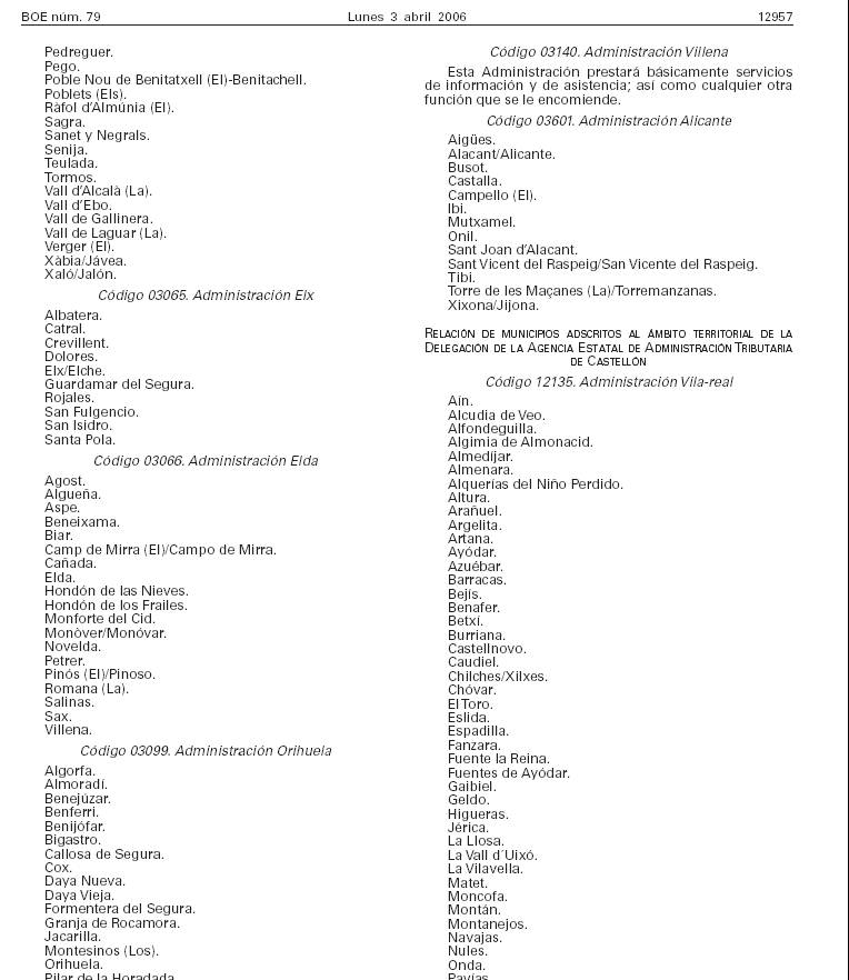 Que si unos decían que sí, que si otros decían que no… bien, se nos ha remitido un documento, concretamente un fragmento del BOE en donde queda claro que el traslado de las competencia más importantes de la oficina de Hacienda de Villena se van a trasladar.