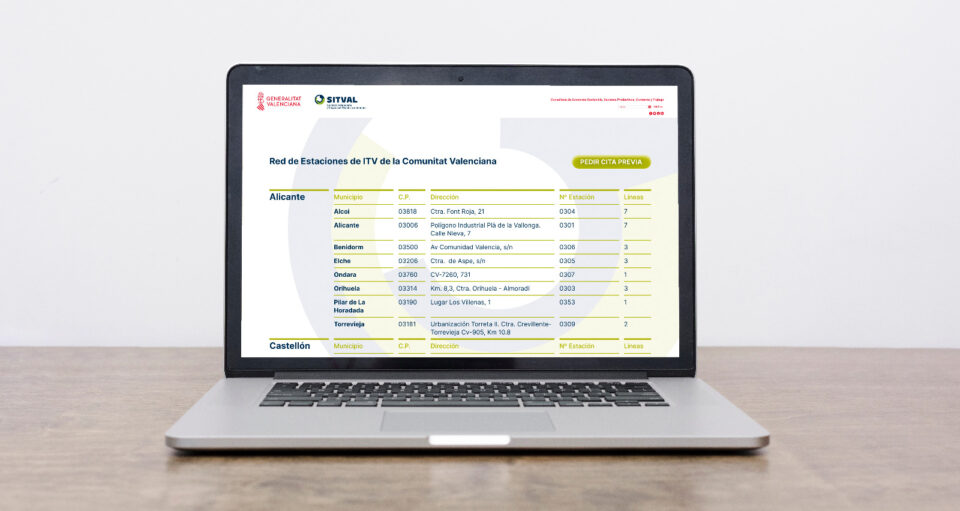 La herramienta online también está adaptada a todos los dispositivos móviles y está operativa y disponible en www.sitval.com. En ella, los usuarios y usuarias de la Comunitat Valenciana pueden seleccionar la estación de ITV que más les convenga y, después de rellenar un formulario con datos personales y del vehículo, reservar día y hora (en horario ininterrumpido de lunes a sábado desde las 8.00 horas hasta las 19.30 horas) para realizar la inspección.