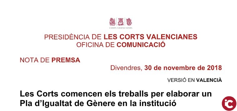 Al document adjunt es pot consultat l’acord de la Mesa de les Corts i el compromís del parlament valencià amb la igualtat de gènere.