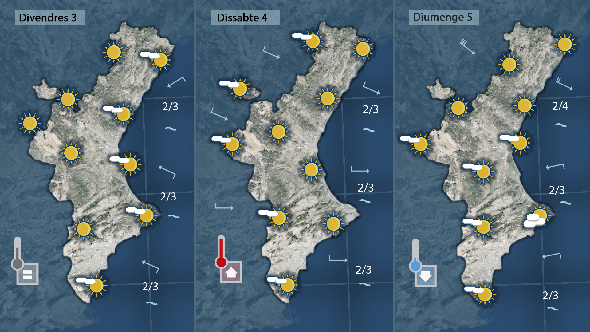 No dedicarem masa temps hui a la previsió perquè demà dijous potser també hauirem de fer servir una rebequeta a primera hora però no ens farà falta a migdia en pujar encara un poc més les temperatures