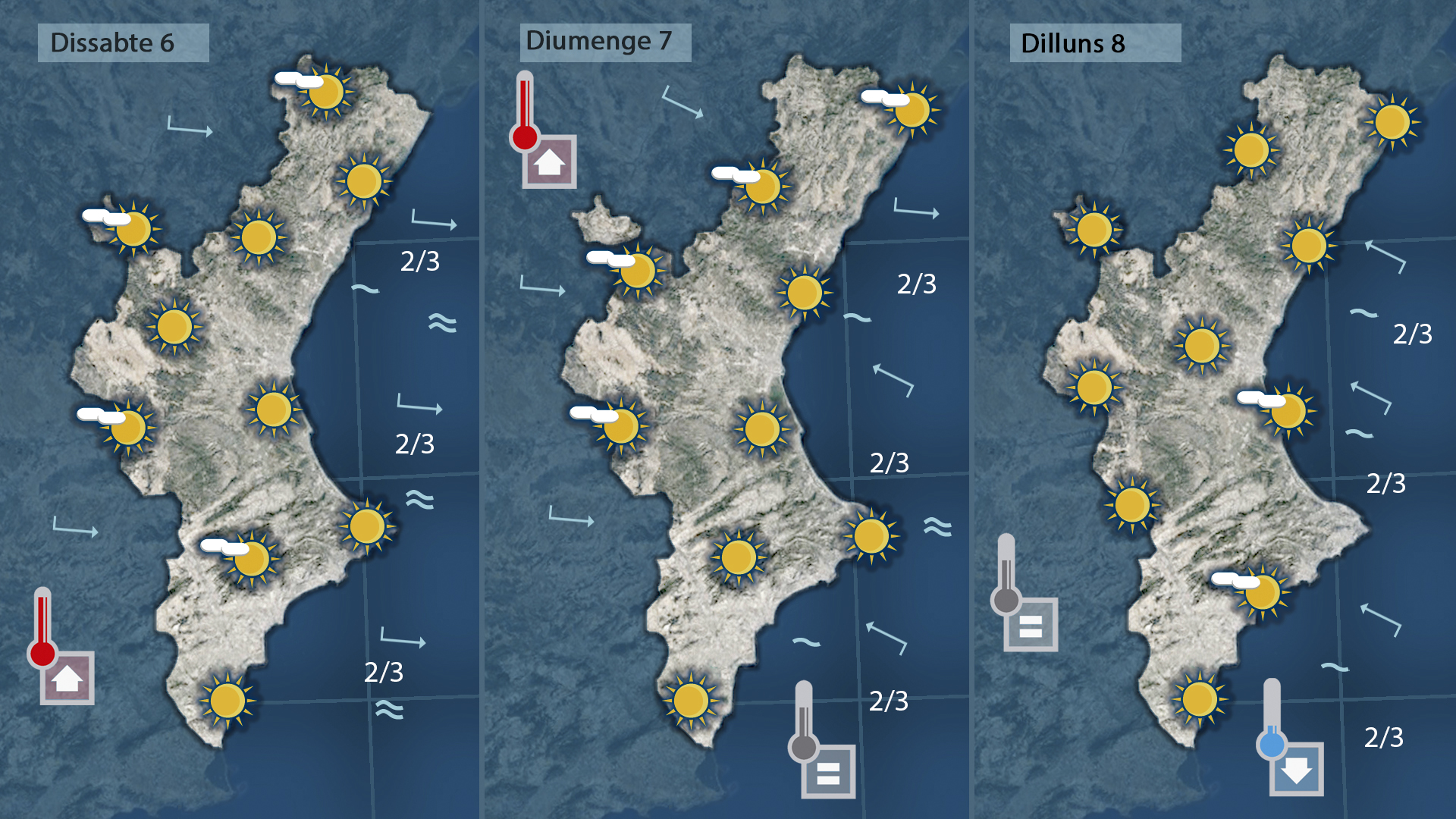 El ponent s’encarregarà de ferpujar de forma notable les temperatures dissabte amb màximes que a la costa podran tocar perfectament els 23-24 graus.