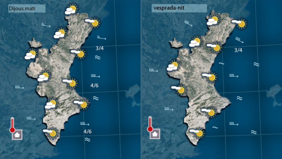 Faran anar ràpid els núvols que tindran poca opció de deixar alguna gota per l’interior. Ha deixat les temperatures nocturnes un poc més altes que ahir i les diürnes no patiran canvis