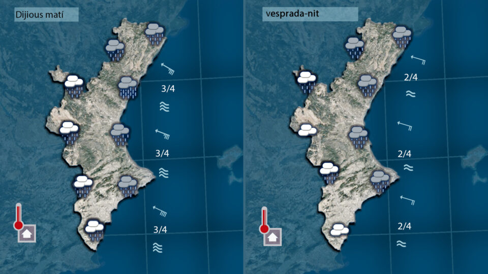 Demà divendres serà el primer dia del final del temporal perquè al nord encara tindrem avís per fortes pluges però al sud es deixarà sentir el llebeig i començarà a deixar-se vore el sol