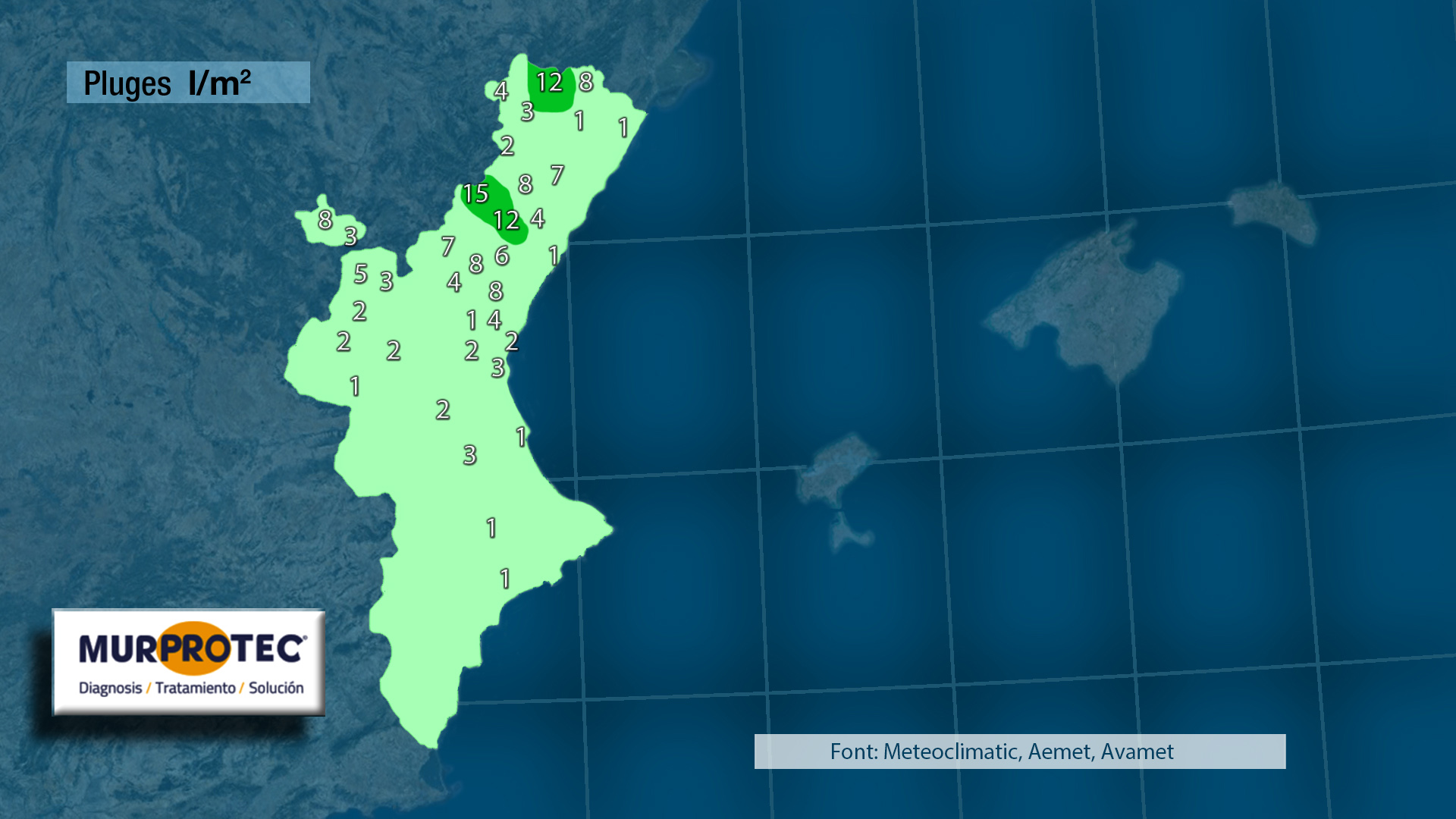 Comencem el dia amb núvols i ruixats residuals fruit de la desfeta de les tempestes que ahir de vesprada eixaren registres di distribució i intensitat molt desigual