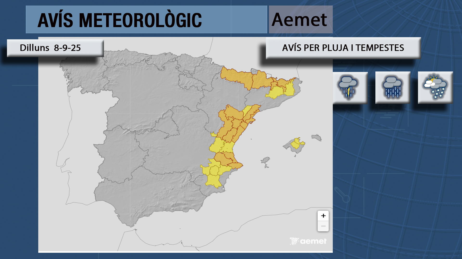 48 hores de pluja contant des d’ara mateix i tenint en compte els avisos d’Aemet per plues i tempestes perquè localment podran ser moderades i fins i tot d’intensitat forta o molt forta