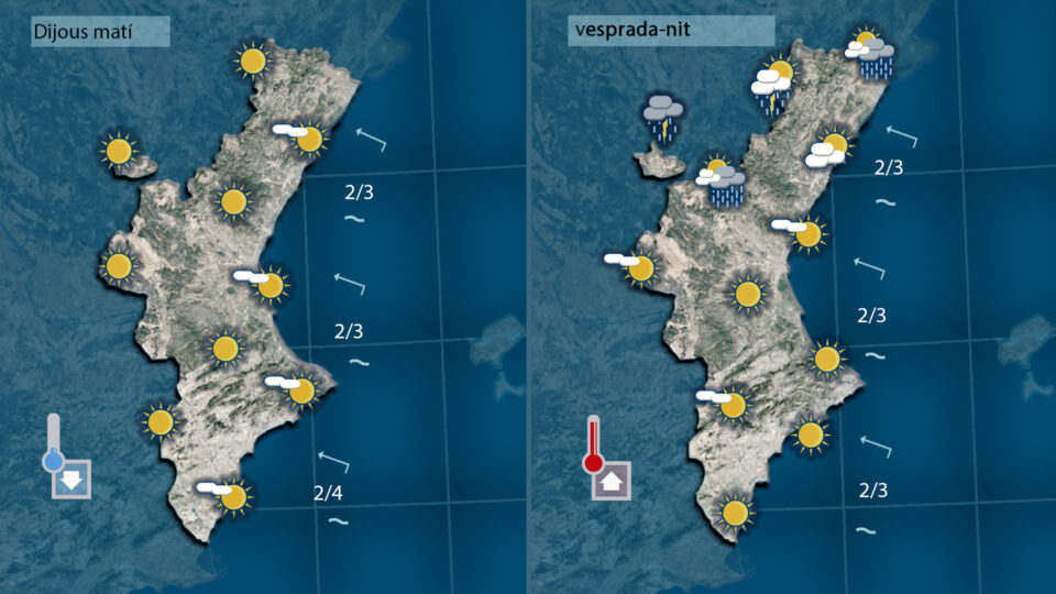La nit ha sigut calorosa. Una nova nit d’insomni tot i haver baixat algun grau les temperatures nocturnes, i al centre del dia la calor apreytarà de nou de valent afavorint la formació de tempestes esta vesprada a les muntanyes del nord.
