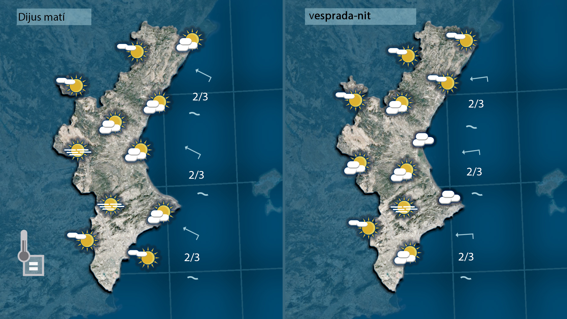 Demà dijous tornaran a baixar un poc les temperatrures amb núvols més abundants a la costa on no descarte que puga escapar-se alguna gota.