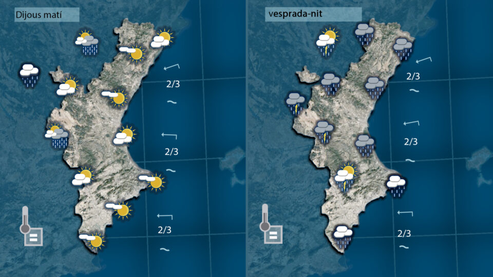 La inestabilitacó de l’oratge d’esta vesprada tindra continuïtat demà divendres. Ens alçarem amb el cel cobert i amb plugims que afectaran el centre i la costa a l’espera que de vesprada també puguen formar-se tronades a les muntanyes de l’interior