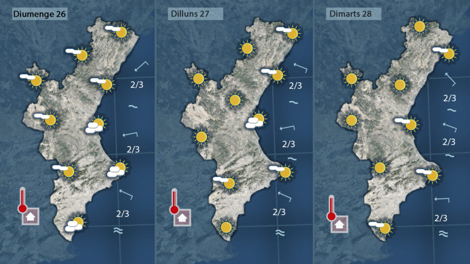 A partir de diumemnge recuperarem el sol i les temperatures pujaran de nou dia rere dia