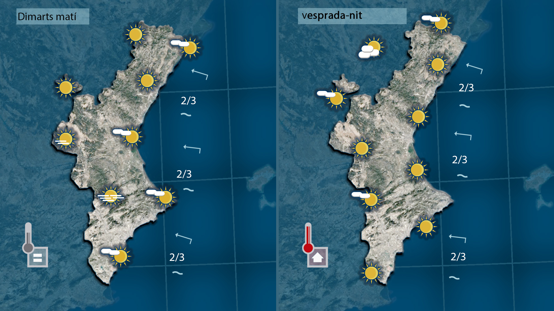 Perquè hui farà tanta calor o més que ahir i tot i vore`s alguns núvols d’evolució esta vesprada no tindran l’energia suficient com per donar pluja. Tenim per davant un dia de molta calor i assolellat per tot arreu tret d’eixos quatre núvols decoratius