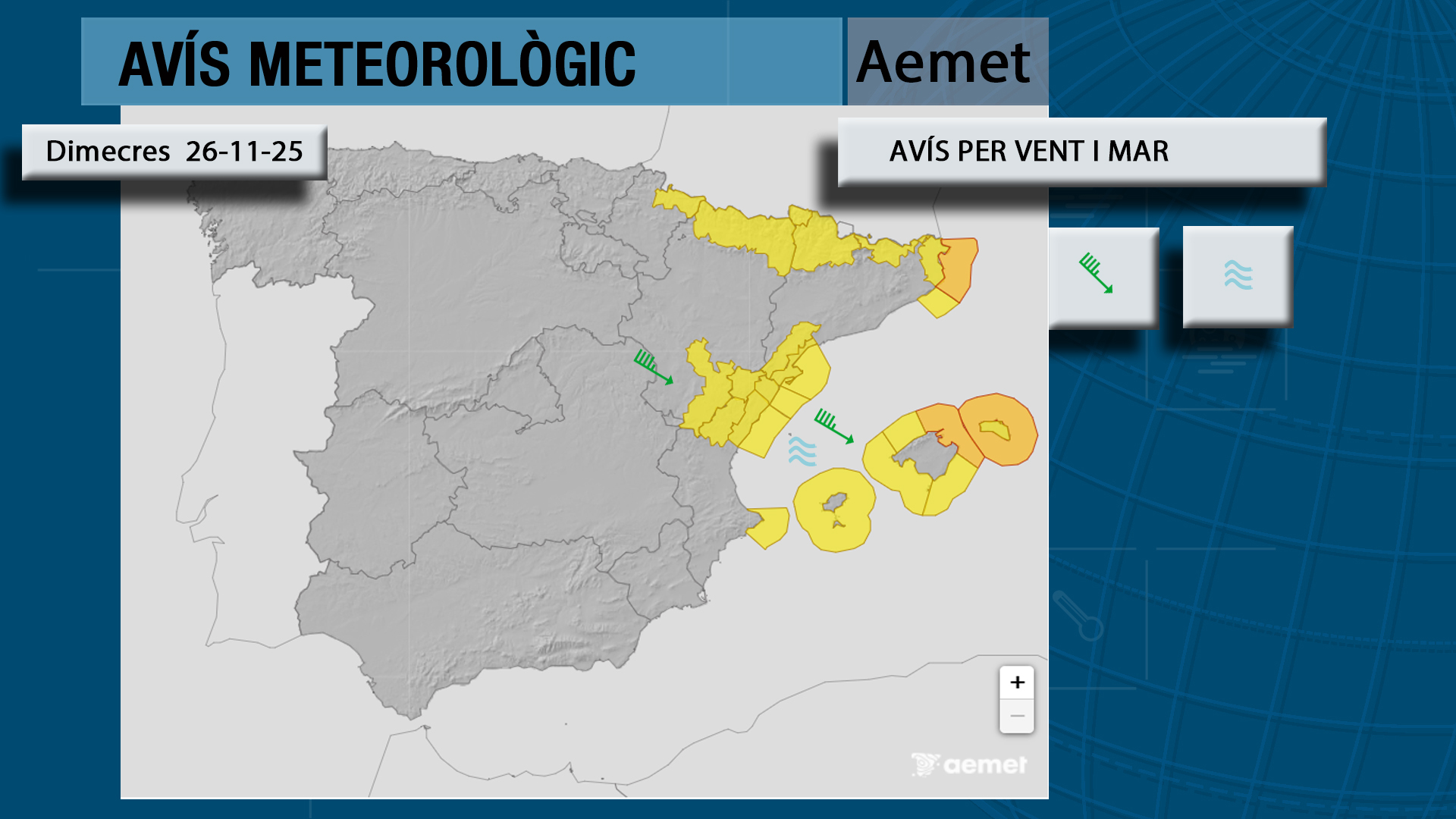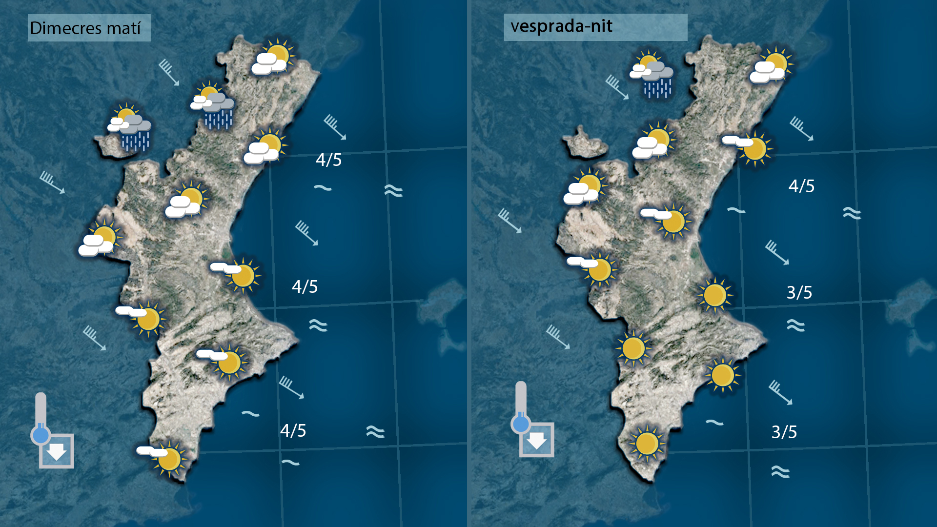 Demà dijous encara bufarà de mestral nal nord però només amb ratxes moderades mentre que al centre i al sud serà el xaloc qui acabe imposant-se