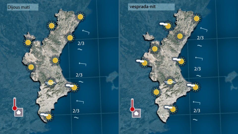 Demà divendresLes temperatures començaran a marcar valors inusualment alts per a finals de maig en carcar valors de juliol. De vesprada es formarà algun nuvolet de tempesta a Aragó que podrà tocar de refilada l’interior de Castelló