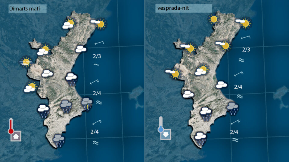 En canvi al nord la nuvolositat serà escasa i les temperatures no patiran grans canvis mengtre que al sud baixaran
