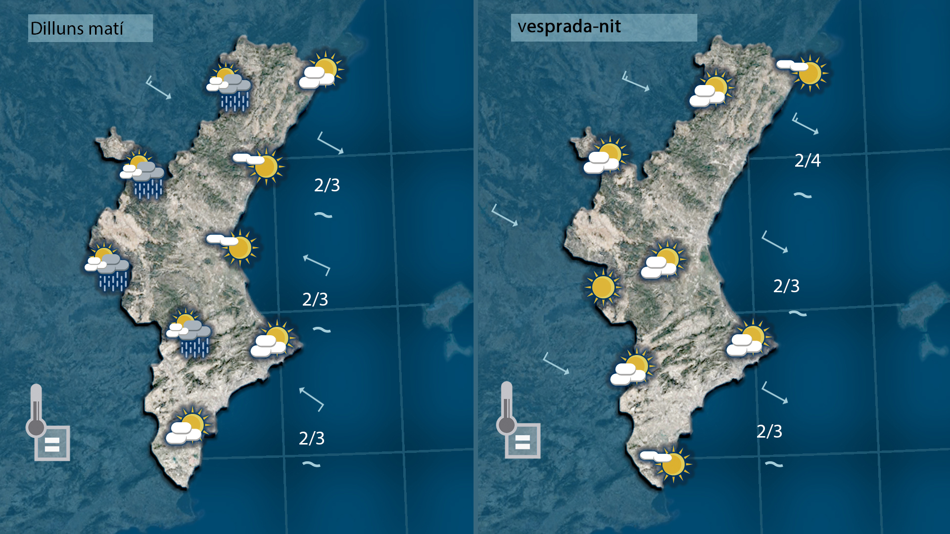 No descarte que fins a migdia de hui els núvols siguen abundants i puga escapar-se alguna gota però esta vesprada la nuvolositat quedarà més trencada i acabarà lluint el sol amb temperatuers que quedaran semblants a les d’ahir