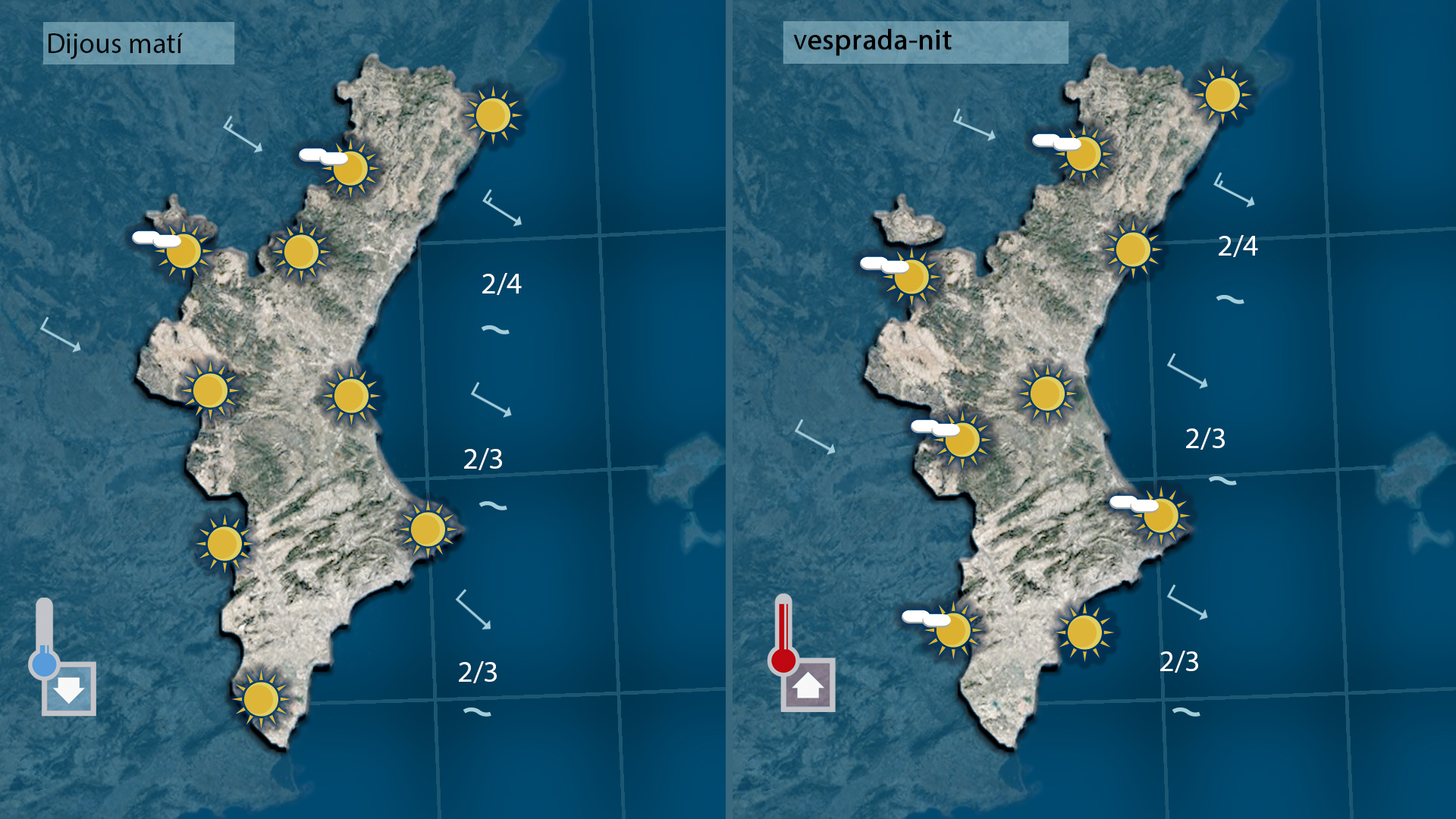 Dia clar i assolellat hui dijous amb un matí molt fresc i temperatures molt suaus al centre del dia