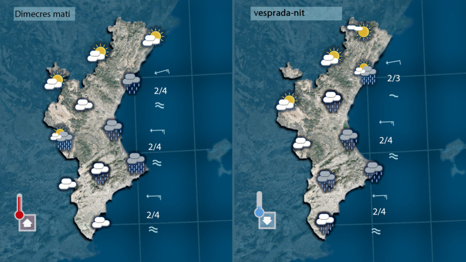 Divendres i dissabte tindrem otratge estable però diumenge el llevant portarà de nou núvols i pluges a la mitad sud de la Comunitat anunciant una nova inestabilització de l’oratge per dilluns i dimarts de la setmana que ve.