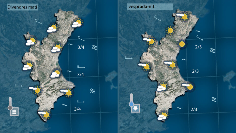 Fins a migdia estarà bufant amb gana, fins a migdia continuaran actius els avisos per vent i a partir d’eixe moment anirem notant com amaina fins quadar quasi encalmat durant la matinada de camí a dissabte