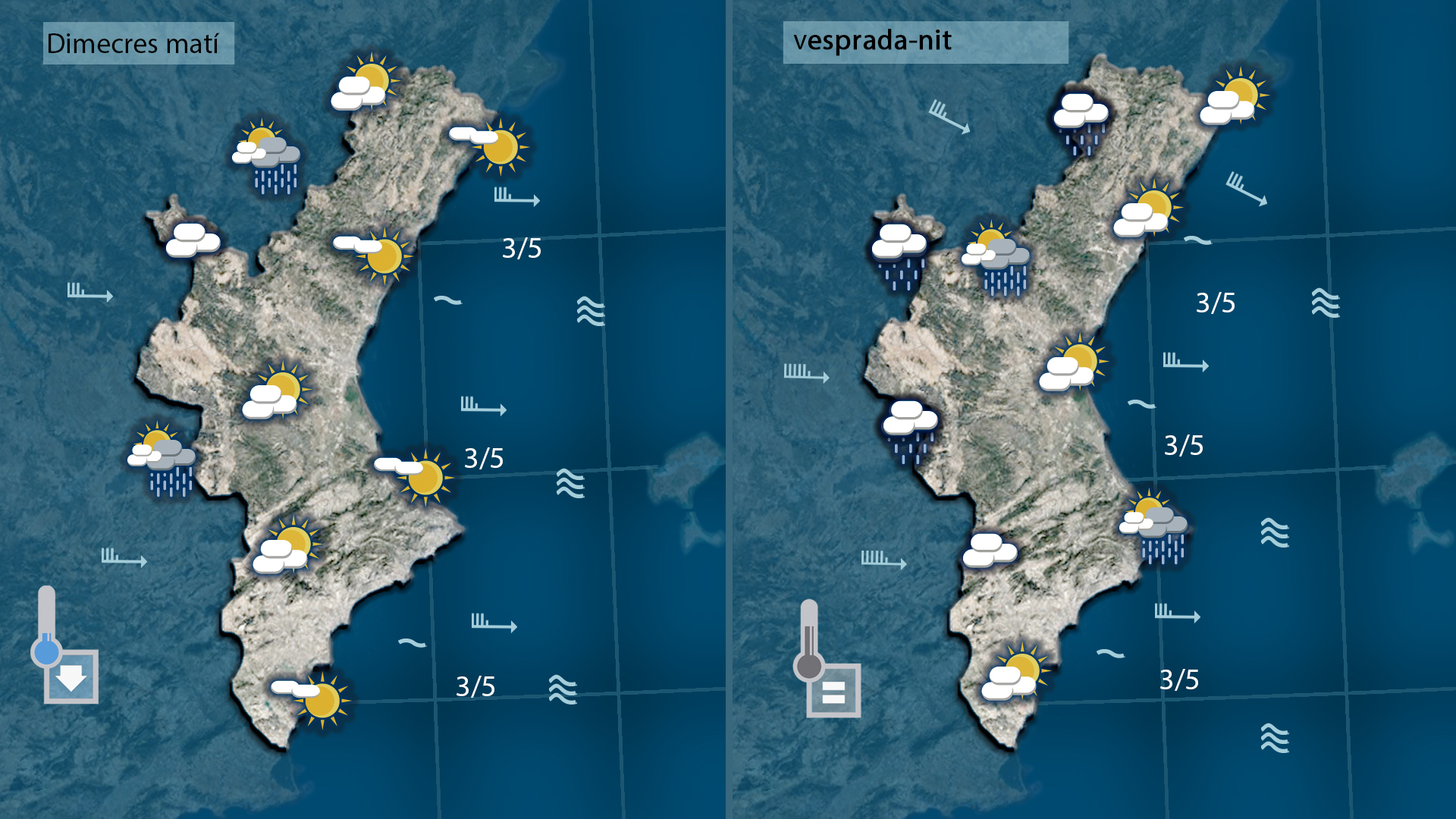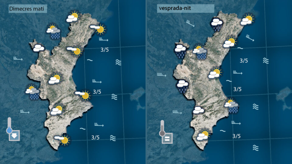 Per a hui dimecres no espere masa canvis. El ponent no bufarà tant fort però no deixarà de bufar en tot el dia. La nuvolositat serà variable i no descarte plugims sembpre més probables al nord i per l’interior