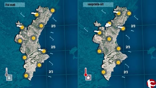 Encetem hui la setmana amb sol i temperatures que ens recordaran que encara estem a finals de lestiu i a les portes de la tardor. Les nits allarguen i això afavoreix que les temperatures nocturnes siguen fresques, però al centre del dia amb sol i vent fluix les temperatures pujaran. Al nord encara es deixarà sentir un poc el mestral, però al centre i al sud bufarà fluix de xaloc.