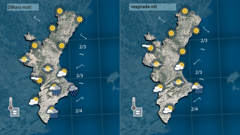 Dijous i divendres la pluja afectarà la mitad nord de la Comunitat quedabnt l’oratge més estable al centre i sobretot al sud.