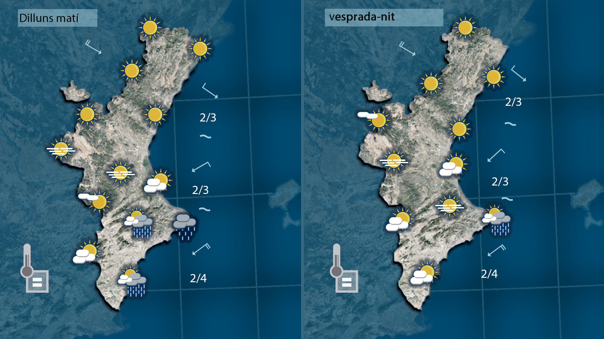 Demà el vent girarà de gregal a mestral deixant el cel lliure de núvols i les temperatures més baixes. Dia d’oratge estable però amb un canvi radical de la situació meteorològica durant la matinada quan el vent gire de nou a gregal i quan començarem a notar els efectes d’una DANA que inestabilitzarà l’oratge i ens farà estar ben pendents del cel ben bé fins divendres.