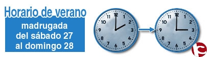 Los relojes de la Unión Europea se adelantarán una hora la madrugada del este domingo, 28 de marzo, de modo que a las 2.00 serán las 3.00 horas, una iniciativa con la que sólo en España se podría ahorrar el 5 por ciento del consumo eléctrico en iluminación, lo que equivale a unos 300 millones de euros, según datos del Instituto para la Diversificación y Ahorro de la Energía (IDAE), del Ministerio de Industria, Turismo y Comercio.