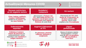 Según ha destacado la conellera de Sanidad, Ana Barceló, “seguimos avanzando hacia una nueva normalidad gracias a la buena situación epidemiológica de la Comunitat Valenciana y al gran esfuerzo de toda la sociedad valenciana en la lucha contra el virus”, algo que ha permitido “eliminar o flexibilizar la gran mayoría de las medidas vigentes hasta el momento”.