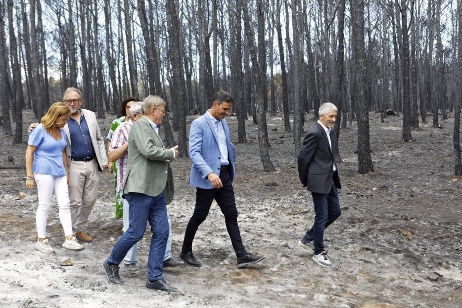 El presidente del Gobierno, Pedro Sánchez, se ha desplazado este lunes a Castellón para visitar las zonas afectadas por los incendios en el entorno de la localidad de Bejís. Sánchez ha anunciado que el Consejo de Ministros de este martes aprobará la declaración de todos los territorios afectados por grandes incendios este verano como zonas especialmente afectadas por una emergencia de protección civil.
