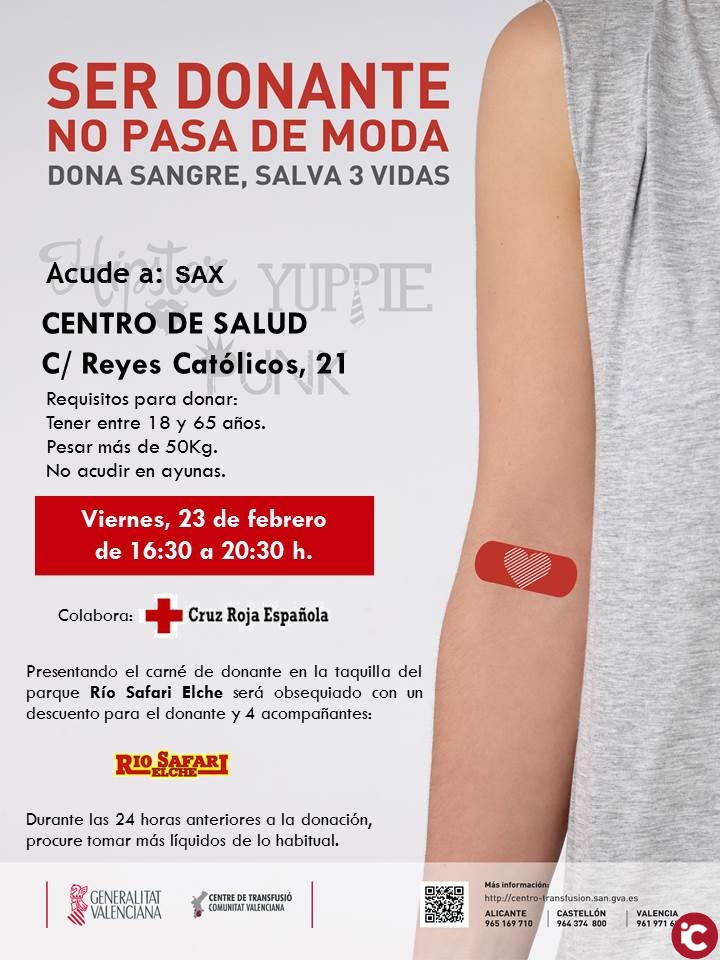 Si eres donante o estás interesado en donar por primera vez, lo podrás hacer en Monforte del Cid, Elda, y Sax durante la próxima semana.