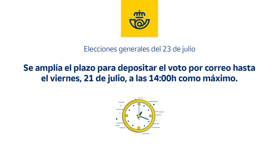 El plazo del depósito de voto finalizaba inicialmente hoy, 20 de julio, pero con la decisión de ampliación adoptada, los ciudadanos y ciudadanas que hayan solicitado ejercer su derecho al voto por correspondencia para las Elecciones Generales que se celebrarán el 23 de julio, dispondrán de más tiempo para depositar su voto.