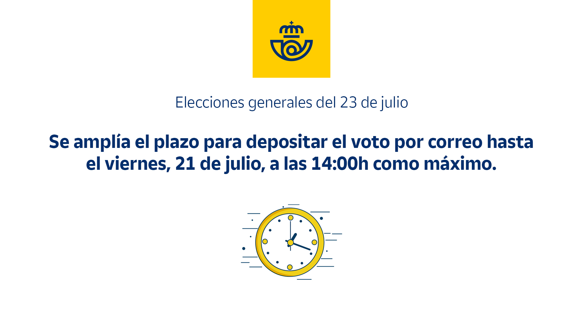 Correos deberá asegurar la entrega de dichos sobres con votos en las respectivas mesas electorales en la jornada electoral del domingo, 23 de julio, dentro de los plazos legalmente establecidos.