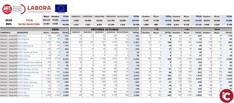 Una vez publicados los datos del paro en nuestra Comarca por el servicio valenciano de empleo (LABORA), la UGT-Unión Comarcal Muntanya-Vinalopo-Vega Baja hace valoración del paro registrado en la zona del Medio y Alto Vinalopó en el mes de Mayo, donde cabe destacar el descenso del desempleo en 543 personas, lo que sitúa la cifra total de parados en 24.306. UGT considera positivas estas cifras tras el inicio pausado de la actividad económica.