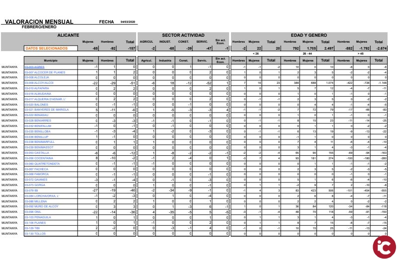 Ibi con 46 parados menos, seguido de Onil con 36 desempleados menos y Castalla con 12 parados menos. Cabe destacar el notable descenso del desempleo en todos los sectores de esta comarca y