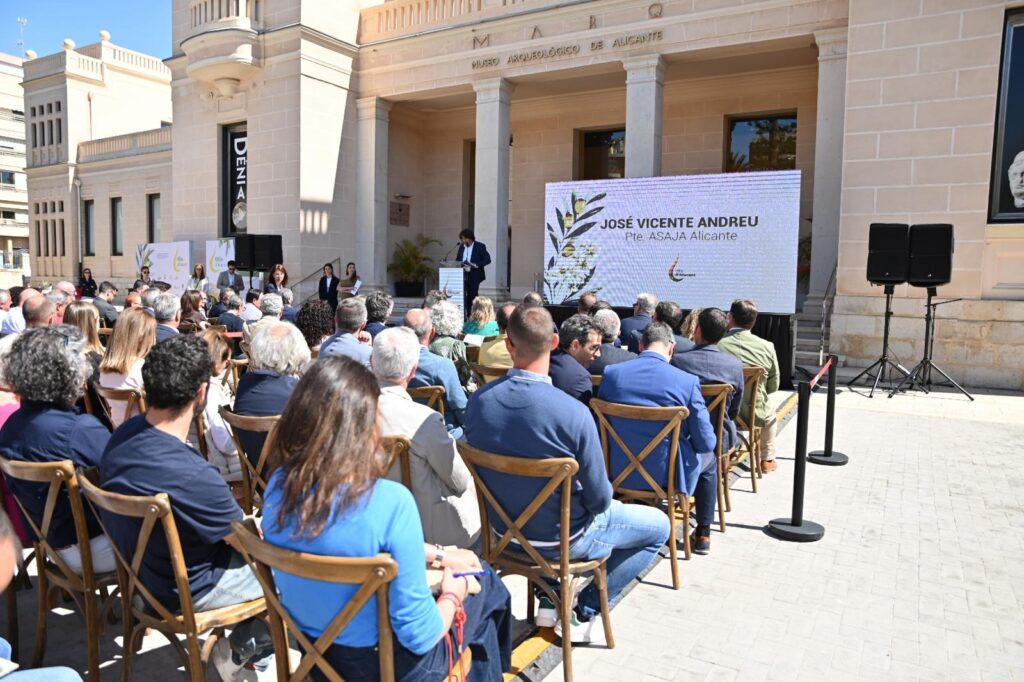 El presidente de ASAJA Alicante, José Vicente Andreu, contextualizó el recorrido del sector recordando que este proyecto es el resultado de «más de diez años de trabajo, diálogo y visión compartida». En su intervención destacó dos hitos clave: la creación en 2015 de la sectorial del olivar dentro de ASAJA Alicante y, en 2022, el nacimiento de la asociación Olis d’Alacant. Explicó que la iniciativa se sustenta en tres grandes objetivos: «unir al sector, promocionar nuestros aceites de calidad y lograr la Denominación de Origen». «Cuando el sector va unido, gana dimensión, voz y futuro, y esa unidad es hoy nuestra mayor fortaleza», subrayó.