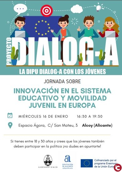 12-01-19.- La Diputación de Alicante arrancará este miércoles en Alcoy los espacios de diálogo del Proyecto Dialog-a, una iniciativa que cuenta con financiación europea a través del programa Erasmus+ con la que se pretende que los jóvenes participen en el diseño de las políticas públicas municipales.