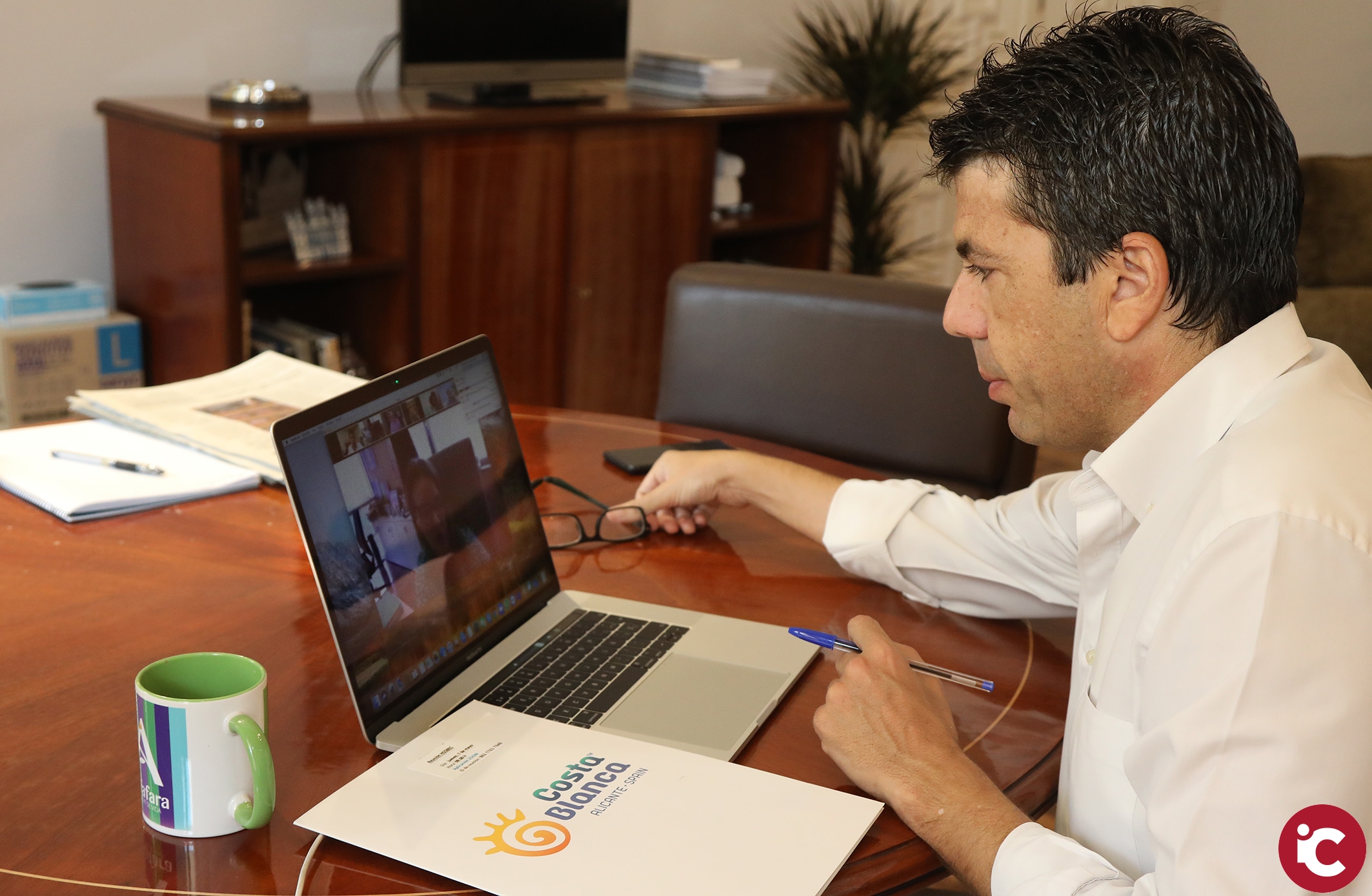 07-05-20.- El presidente de la Diputación de Alicante, Carlos Mazón, ha mostrado hoy su respaldo total al modelo turístico de la Costa Blanca que defienden los hoteleros de la provincia, así como el conjunto del sector. El responsable alicantino se ha reunido esta mañana de forma telemática con la patronal hotelera Hosbec, a la que ha trasladado su apoyo tras las ‘desafortunadas’ declaraciones vertidas por la consellera y vicepresidenta del Consell, Mónica Oltra, en las que ponía en duda el modelo turístico actual e instaba a cambiarlo.