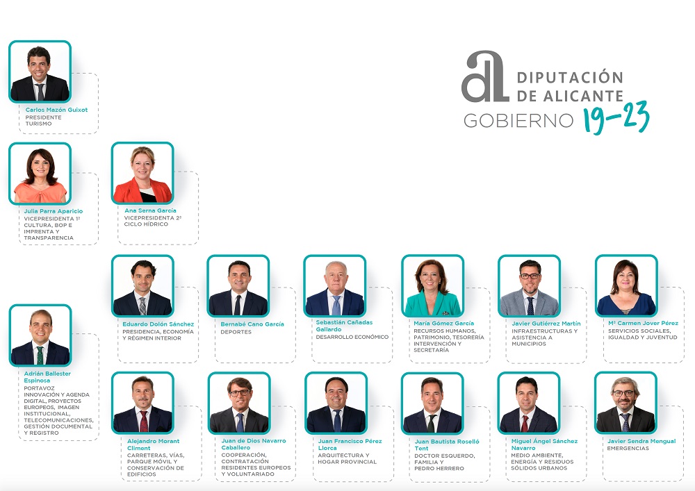 Mazón, que asume directamente también el área de Turismo, ha destacado la “ilusión” con la que el nuevo equipo inicia esta etapa “conscientes del reto que tenemos, no solo del contexto que nos envuelve en estos momentos sino con las luces largas puestas para una legislatura que se promete apasionante y en la que nos vamos a dedicar a defender la provincia de Alicante y a promocionarla y proyectarla de la mejor manera posible”.