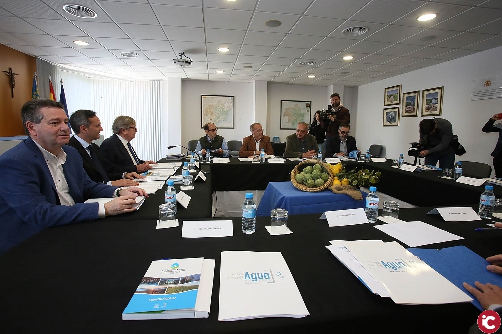 Antes de la reunión de la Comisión, el presidente de la Diputación y el presidente de la Federación de Comunidades de Regantes de la Comunidad Valenciana (FECOREVA), José Antonio Andújar, han firmado un convenio de colaboración para seguir apoyando la actividad que desarrolla esta entidad en la provincia e incluye, entre otras, la organización de jornadas o cursos de formación para regantes.