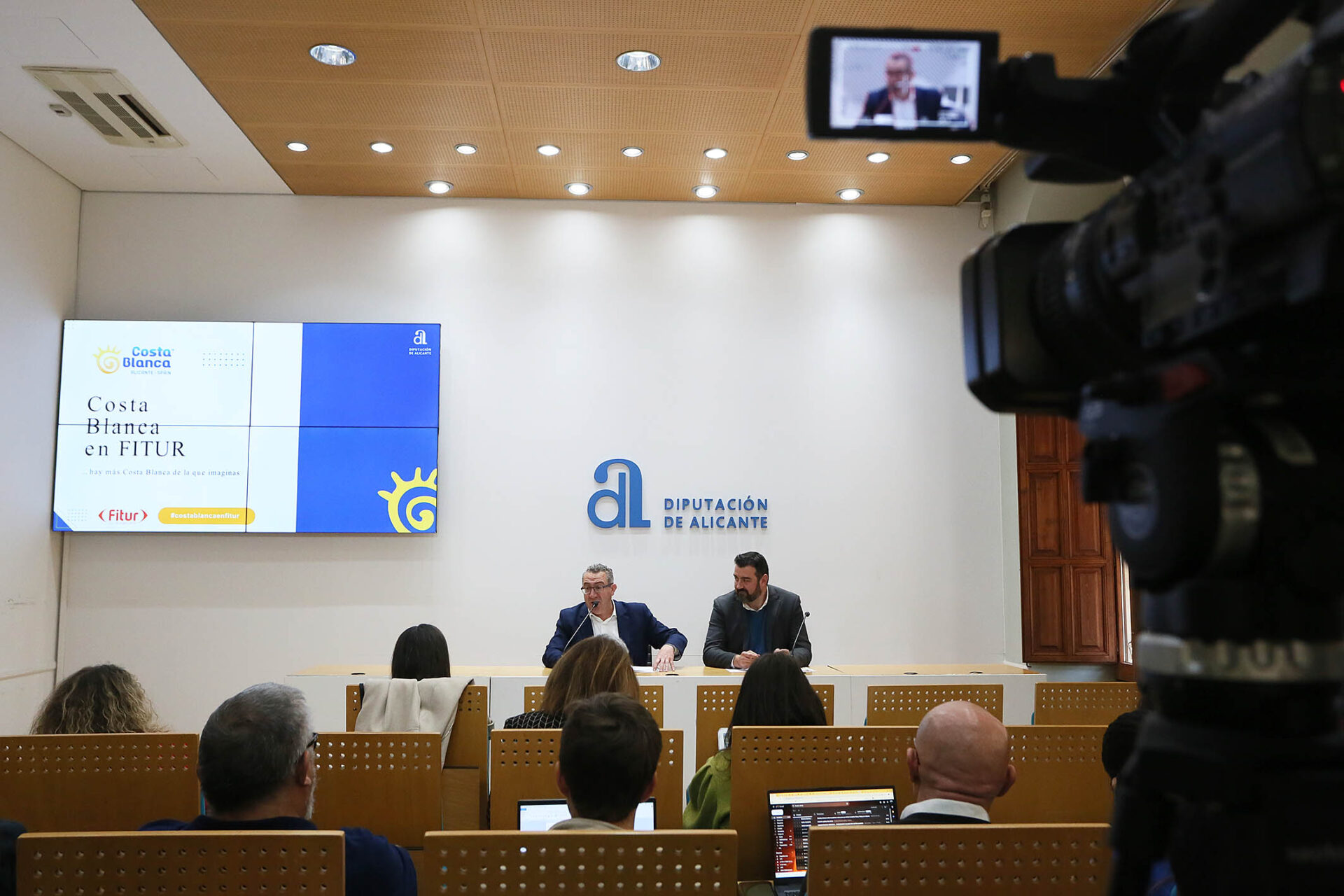 Durante la presentación de la estrategia del organismo autónomo de la Diputación en FITUR 2025, donde también ha participado el director del Patronato Costa Blanca, José Mancebo, se han esbozado las acciones que se ejecutarán, tanto en la parte profesional como en la destinada al público generalista.