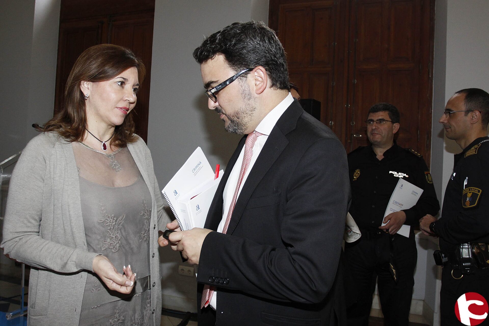 La presidenta de la Diputación de Alicante, Luisa Pastor, la diputada de Igualdad y Juventud, Mercedes Alonso, y el decano de la Facultad de Ciencias Sociales y Jurídicas de la UMH y director del proyecto, Fernando Miró, han presentado esta mañana los resultados de esta investigación encargada por la institución provincial al Centro para el estudio y prevención de la delincuencia CRIMINA.