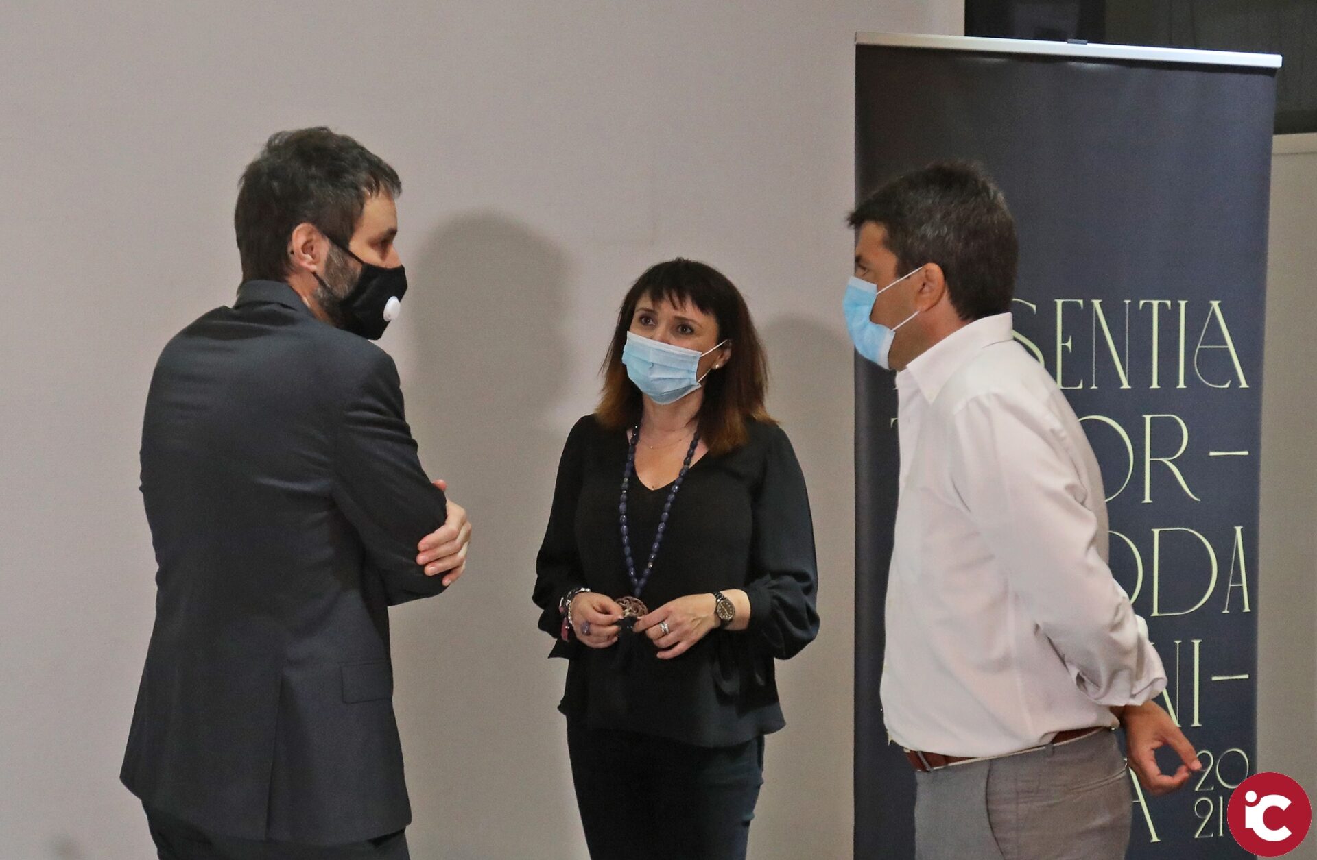El presidente, Carlos Mazón, y la vicepresidenta y diputada de Cultura, Julia Parra, arropan al auditorio en su primera presentación en periodo de pandemia