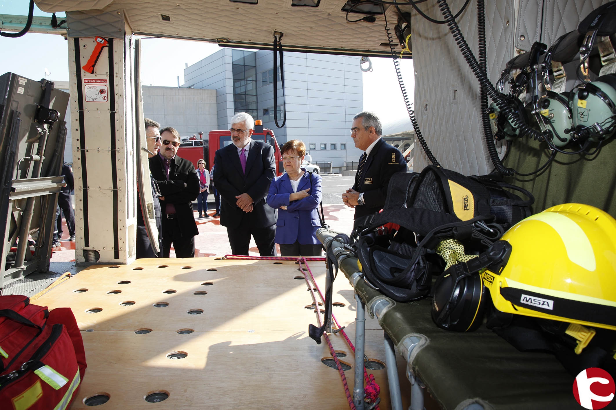 La presidenta de la Diputación de Alicante, Luisa Pastor, ha presentado esta mañana el servicio de helicóptero que reforzará durante los próximos seis meses las tareas de rescate, salvamento y apoyo en la lucha contra incendios del Consorcio Provincial de Bomberos. Este servicio, con un coste de 770.000 euros, estará operativo desde Semana Santa y hasta finales del mes de octubre, periodo en el que se incrementa de manera significativa la población residente en la provincia.