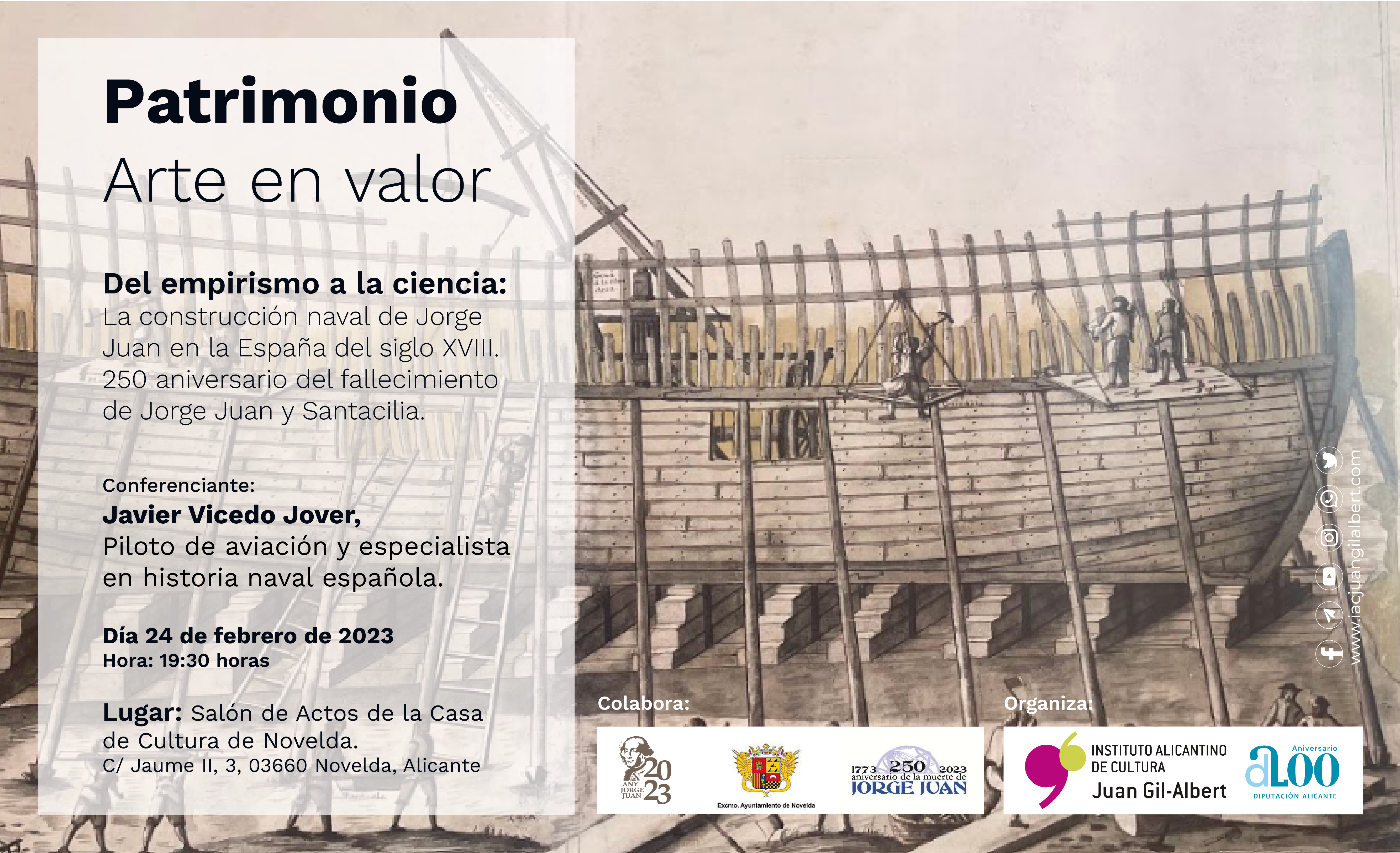 20-02-23.- El Instituto Alicantino de Cultura Juan Gil-Albert ha organizado una conferencia sobre la figura de Jorge Juan. El insigne marino noveldense será el próximo protagonista del ‘Ciclo Patrimonio. Arte en Valor’ que conmemorará el 250 aniversario de su fallecimiento.