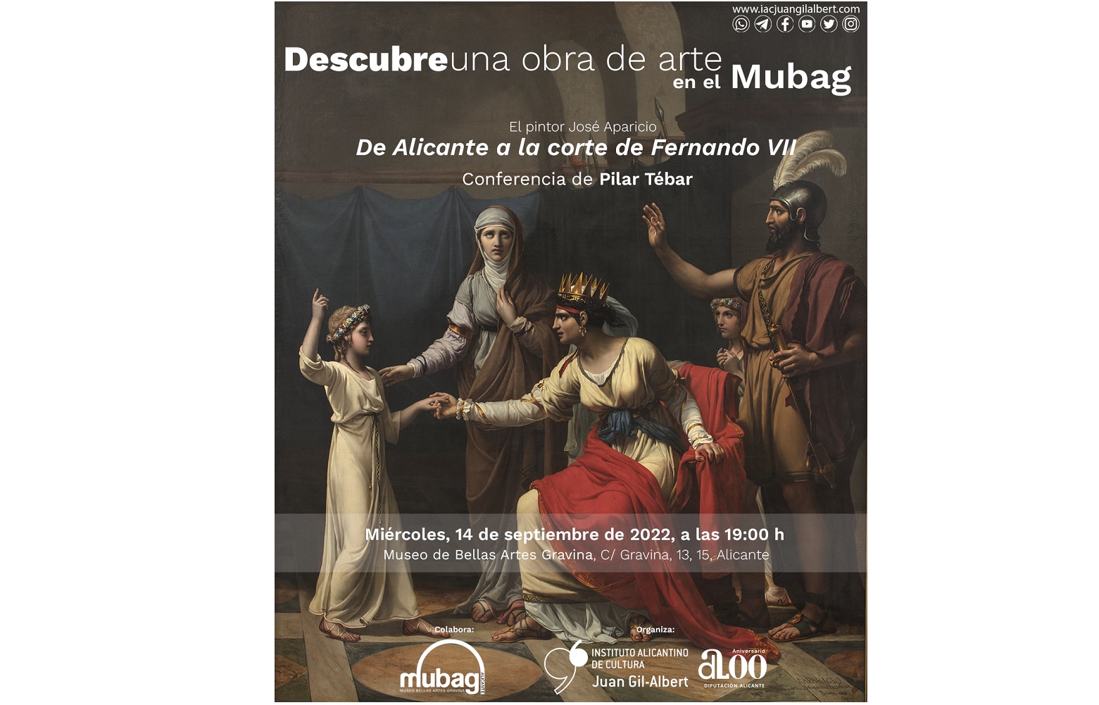 Bajo el título ‘El pintor José Aparicio, de Alicante a la corte de Fernando VII’, Tébar mostrará la relevancia de este destacado artista del neoclasicismo españolque fue relegado al olvido pero que, tras años de investigación, ha vuelto a su ciudad a través de una muestra que ofrece una visión nueva de su trayectoria profesional, convirtiéndose en un antes y un después en el reconocimiento a su figura”, ha explicado la directora cultural del Gil-Albert.