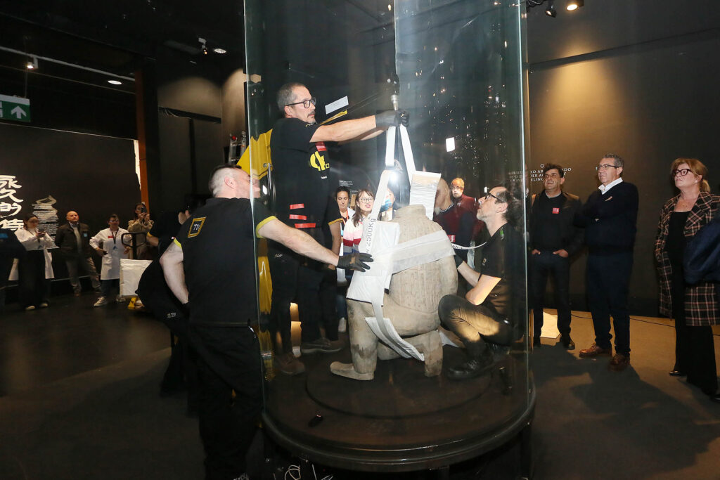El desmontaje de la muestra, que realiza una empresa especializada en el transporte de piezas de arte, se ha iniciado con uno de los nueve guerreros de terracota que ha incluido la muestra y que se han convertido en estos últimos diez meses en el principal reclamo del MARQ. Tras retirar, en primer lugar, la cabeza de esta pieza, los operarios, bajo la estricta supervisión de los arqueólogos chinos y alicantinos, han procedido a extraer el resto del cuerpo de la vitrina donde se exhibía hasta ahora.