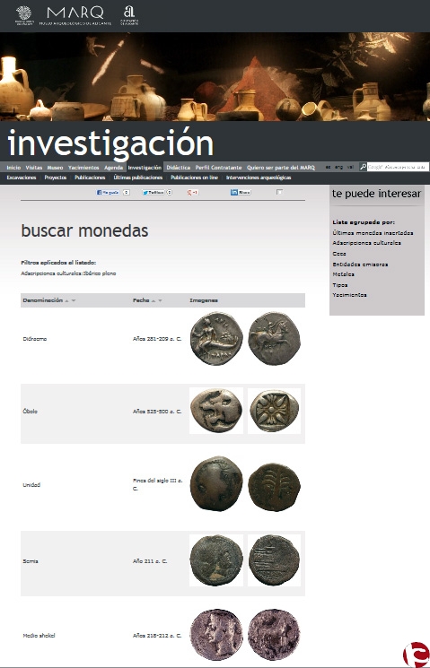 Más de 200 piezas componen este apartado virtual donde el visitante podrá consultar a través de completas fichas las fotografías del anverso y el reverso de las monedas, su descripción, cronología o entidad emisora, entre otros aspectos. Además, los elementos se presentan también agrupados según el tipo de metal, sus cecas, sus adscripciones culturales y su procedencia.