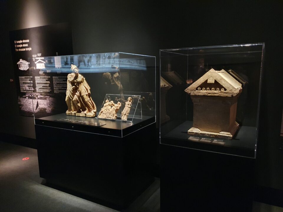 ‘Etruscos. El amanecer de Roma’ es un viaje para descubrir la estructura cultural, social, política y urbana de esta civilización italiana. En la colección se pueden admirar valiosos objetos, como la diadema de Orbetello o las pulseras de la necrópolis de Bisenzio. Destacan, además, piezas de armamento y material cerámico. La parte más importante, formada por piezas funerarias, incluye obras como las urnas de Ulises, de las Sirenas y del Rapto de Proserpina de Volterra o el sarcófago masculino de la necrópolis de Rosavecchia en la Toscana.