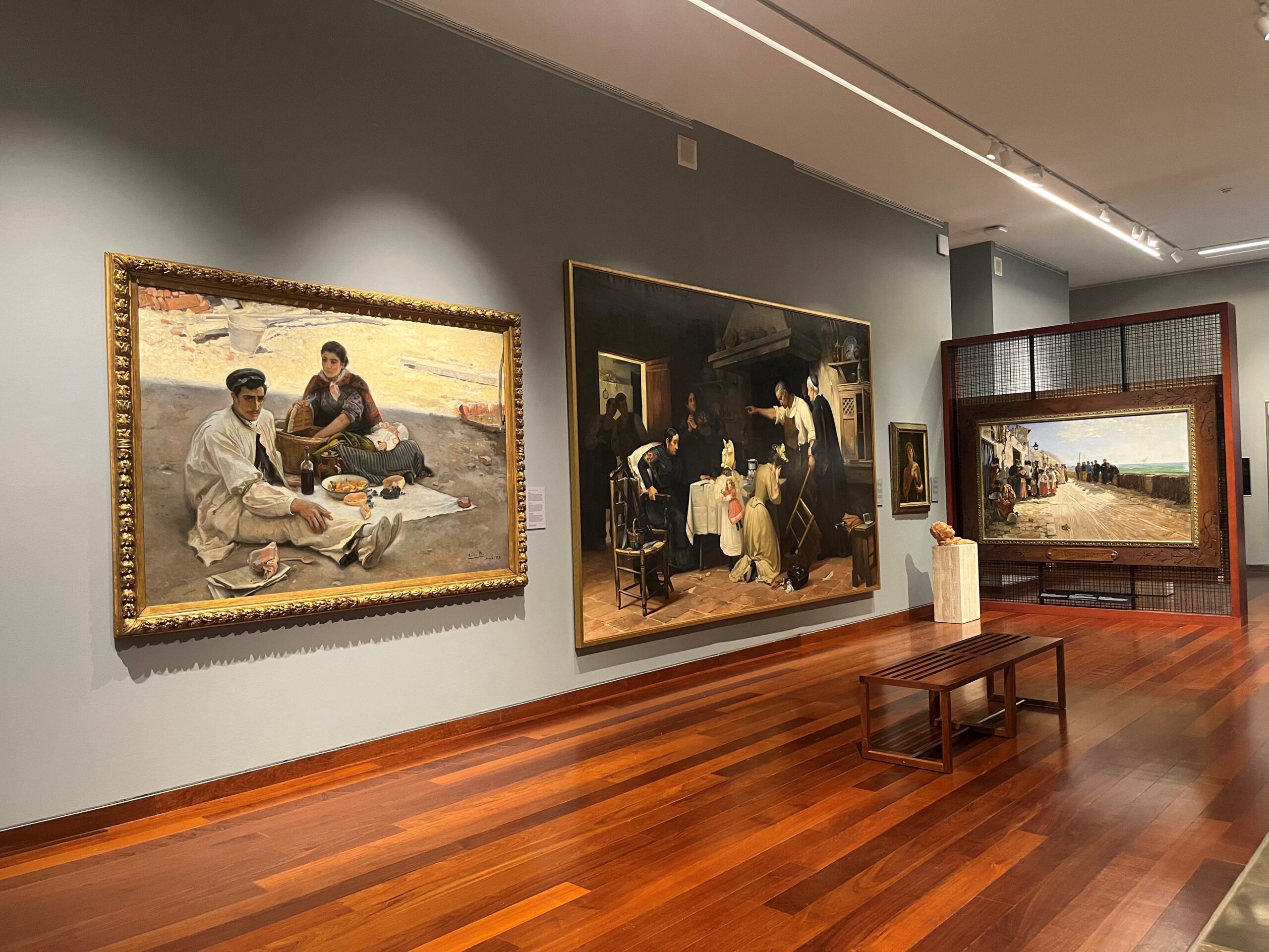 Las doce se puede contemplar ya en el bloque de la exposición titulado “La pintura, testigo social”, en el que se reúnen otras obras de temática social de artistas como Antonio Fillol Granell, Joaquín Bárbara y Balza, Federico Godoy Castro, Heliodoro Guillén Pedemonti, Vicente Poveda Juan o Luis García Sampedro, en su mayoría depósitos del Museo Nacional del Prado.