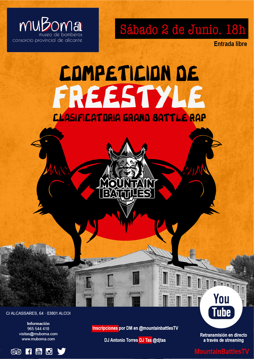 25-05-18.- El Museo del Consorcio Provincial de Bomberos de Alicante (MUBOMA) acogerá una jornada de puertas abiertas con una competición de Freestyle de carácter regional. La cita será el sábado 2 de junio, a partir de las 18:00 horas, y el concurso de rap será clasificatorio para la Grand Battle Rap que se disputará este verano.