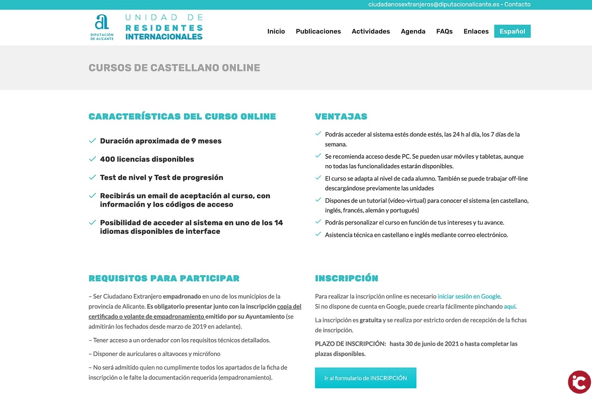 Las personas que deseen participar en esta actividad gratuita, subvencionada por la institución provincial, pueden inscribirse a través de la página www.ciudadanosextranjeros.es, donde deberán rellenar una ficha y adjuntar el certificado o volante de empadronamiento. El plazo ya está abierto y finaliza el próximo 30 de junio o, en su caso, una vez completadas las 400 plazas ofertadas.